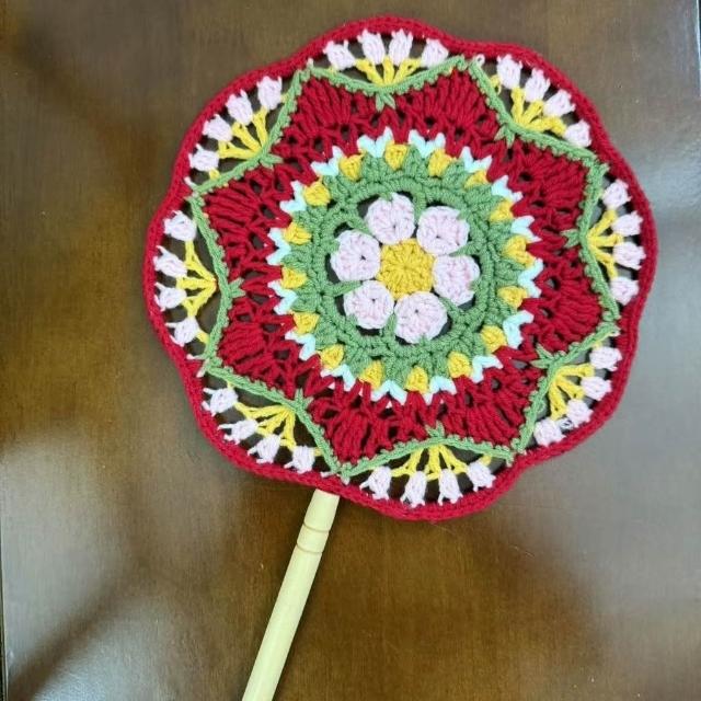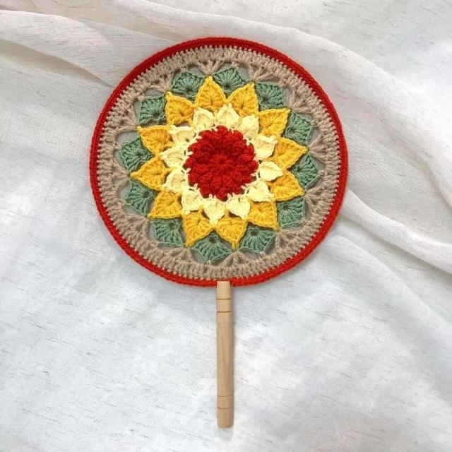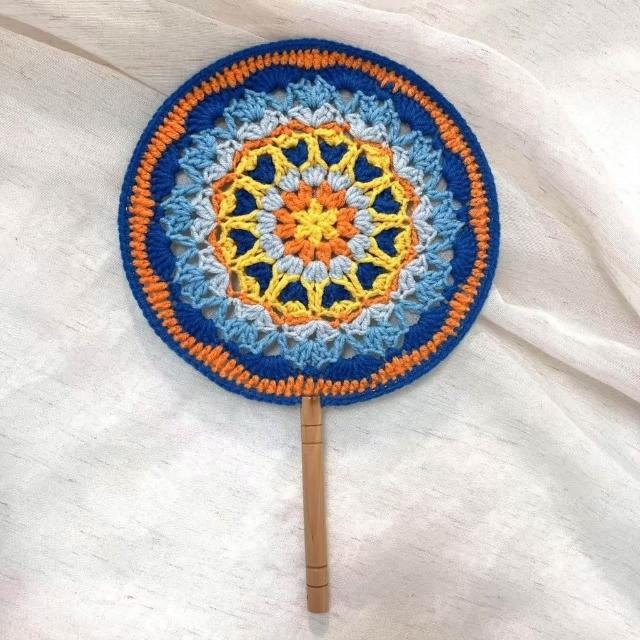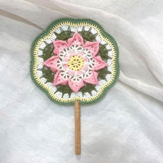 手工鉤織拼色新中式古風扇子-純手工編織團扇旅遊喬遷送禮好物