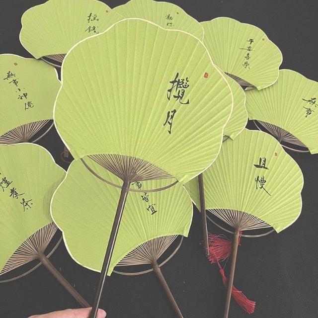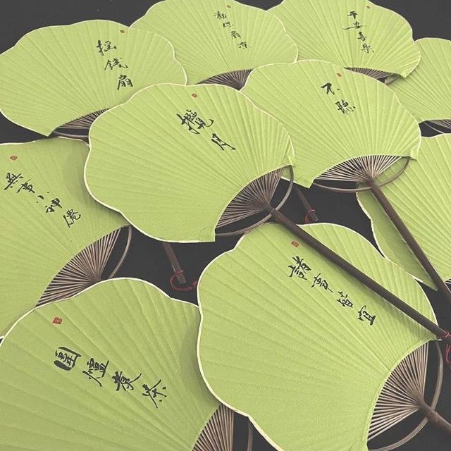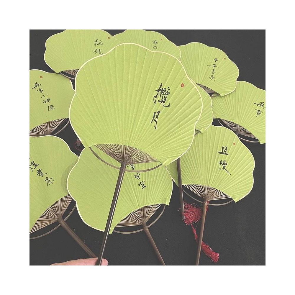 綠色清新紫竹團扇海棠手寫定製國風旗袍漢服拍照道具文藝書法扇子