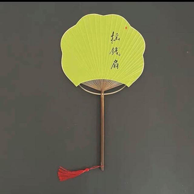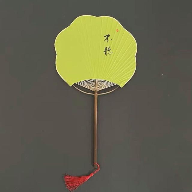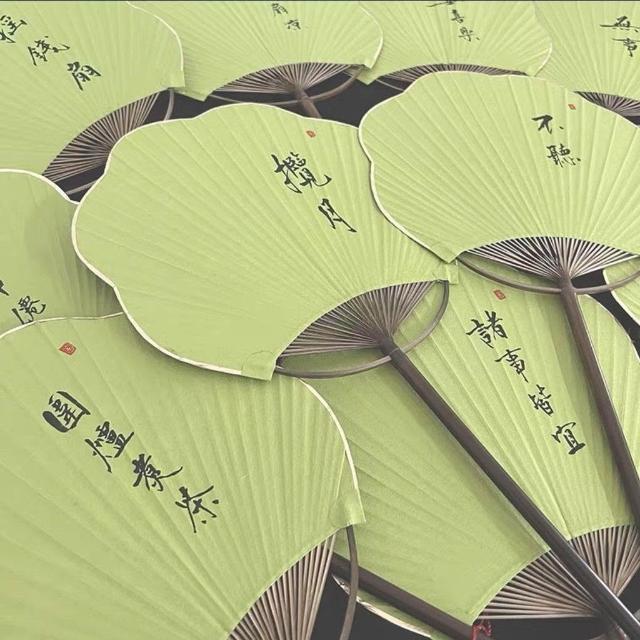 綠色清新紫竹團扇海棠手寫定製國風旗袍漢服拍照道具文藝書法扇子