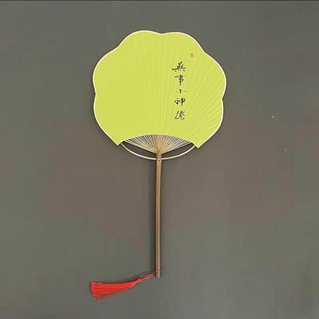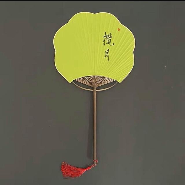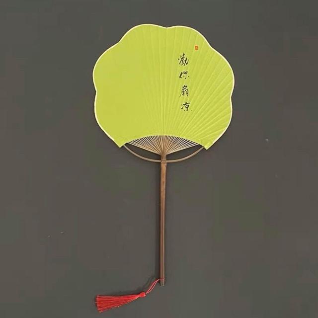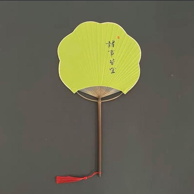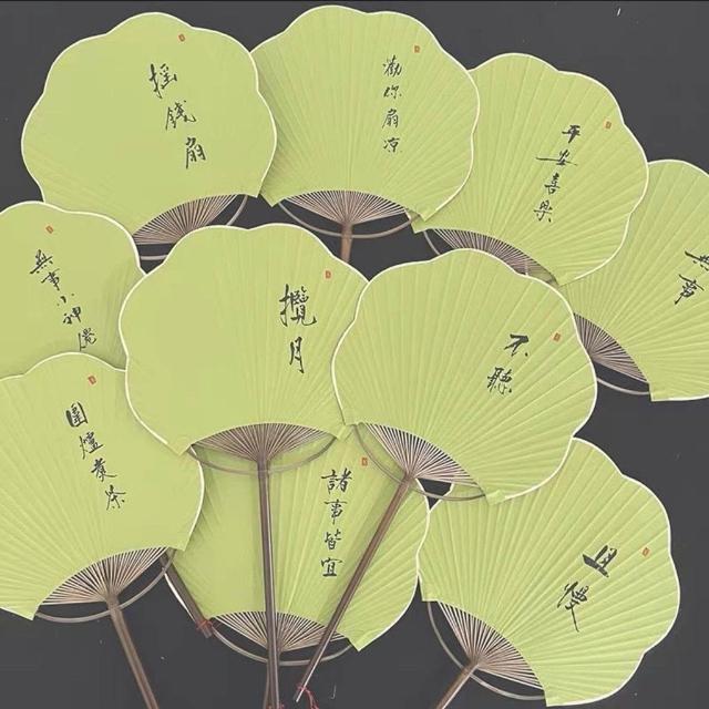 綠色清新紫竹團扇海棠手寫定製國風旗袍漢服拍照道具文藝書法扇子