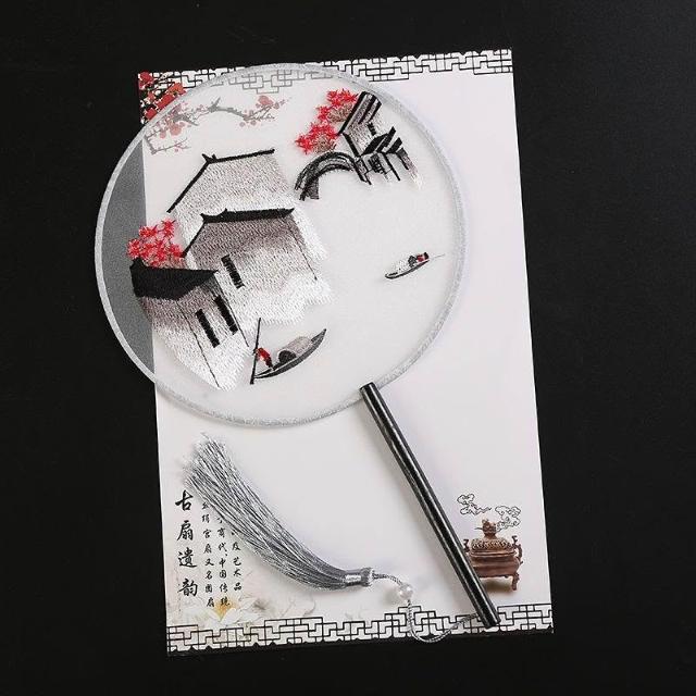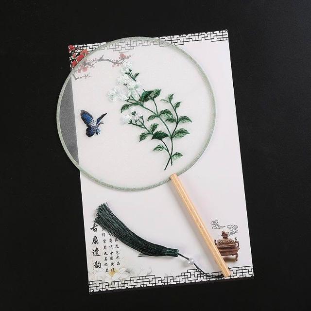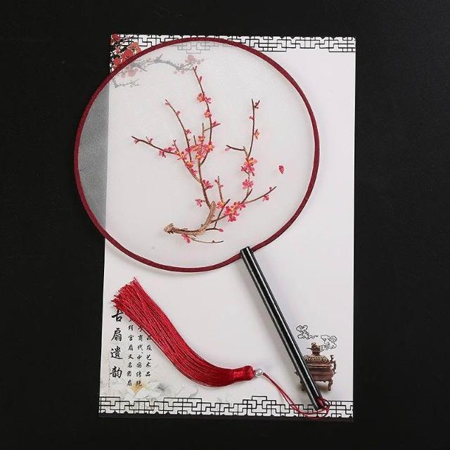 高檔扇子古風刺繡仙鶴真絲扇漢服圓扇舞蹈扇團扇手持扇子繡花成品