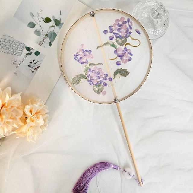 中國古風流蘇團扇刺繡古典漢服拍照舞蹈扇