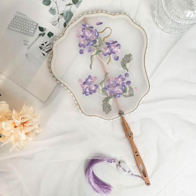 中國古風流蘇團扇刺繡古典漢服拍照舞蹈扇