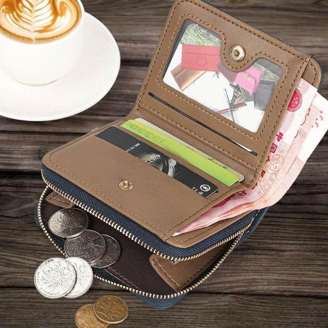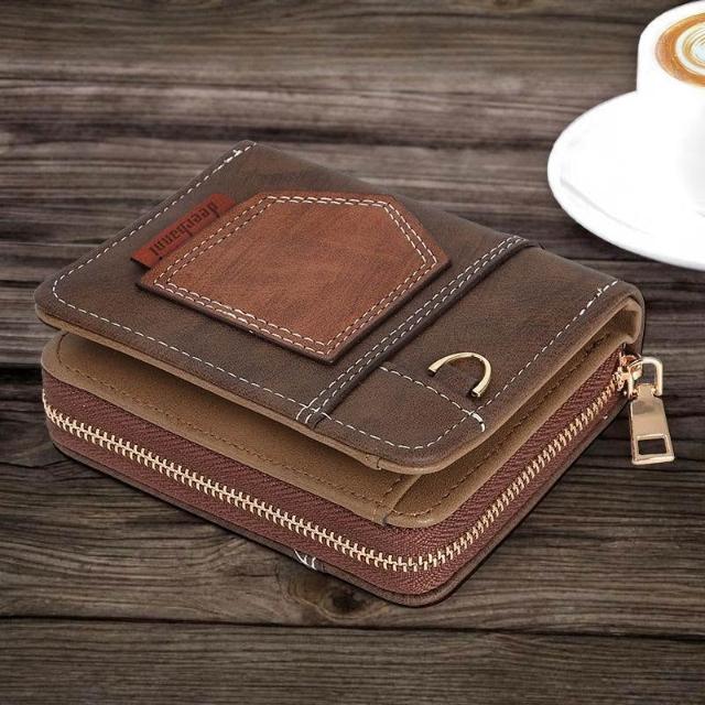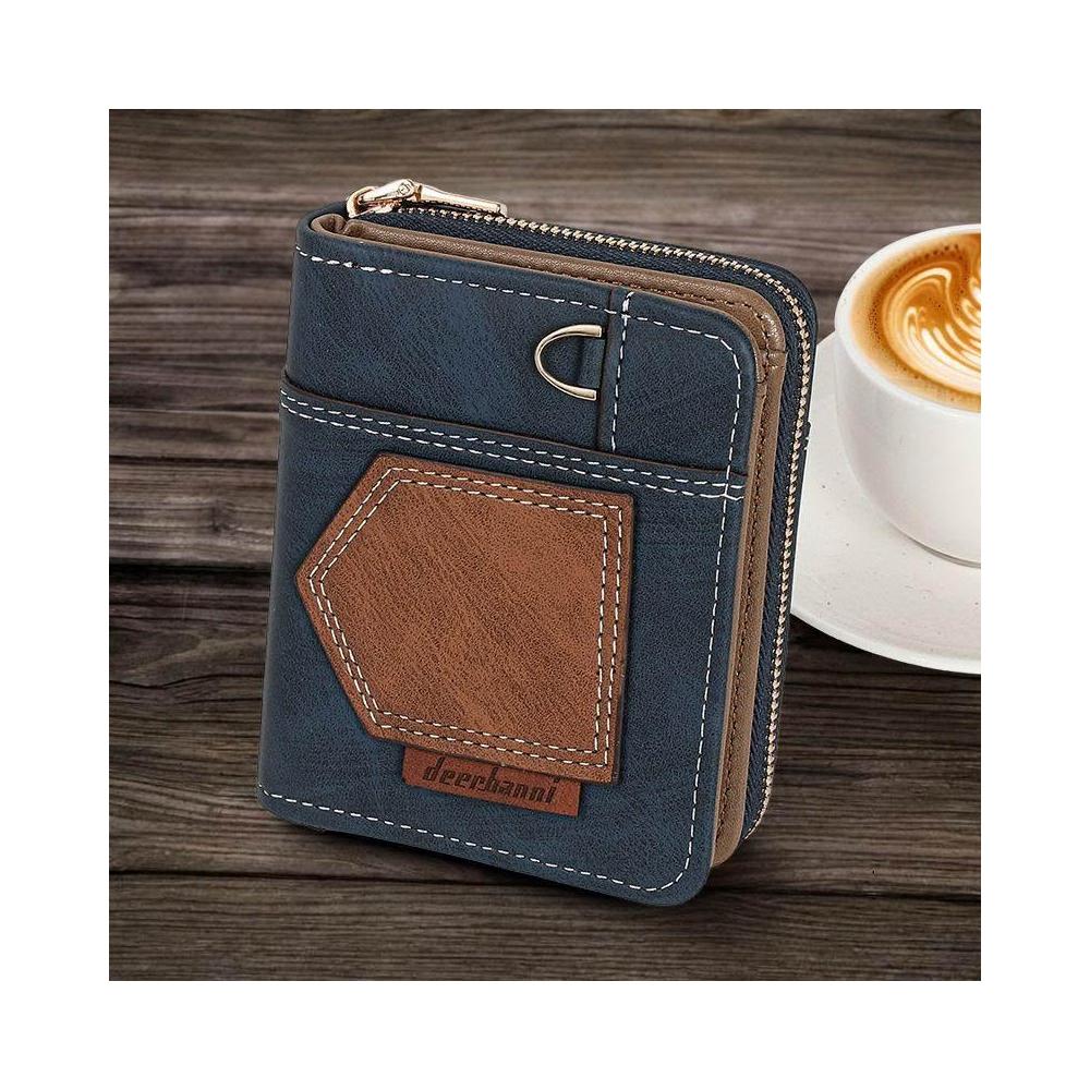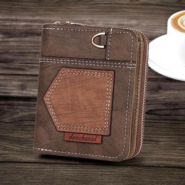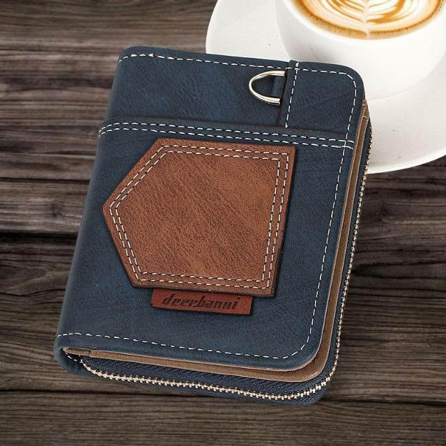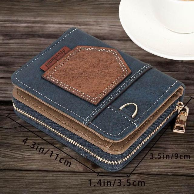 新款拼接男式錢包短款摺疊小巧復古零錢包時尚商務兩折拉鍊零錢包