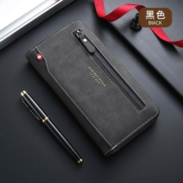 古萊新款時尚男士拉鍊錢包長款多卡位大容量多功能零錢包wallet