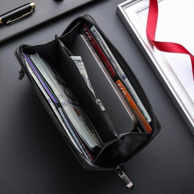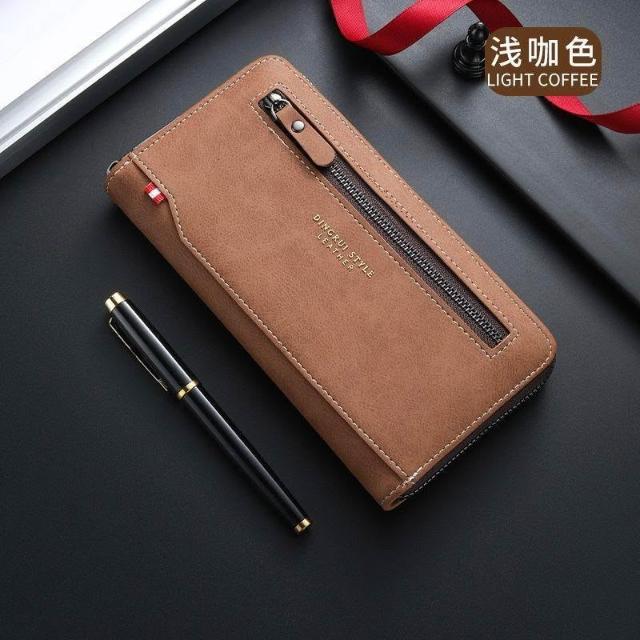 古萊新款時尚男士拉鍊錢包長款多卡位大容量多功能零錢包wallet