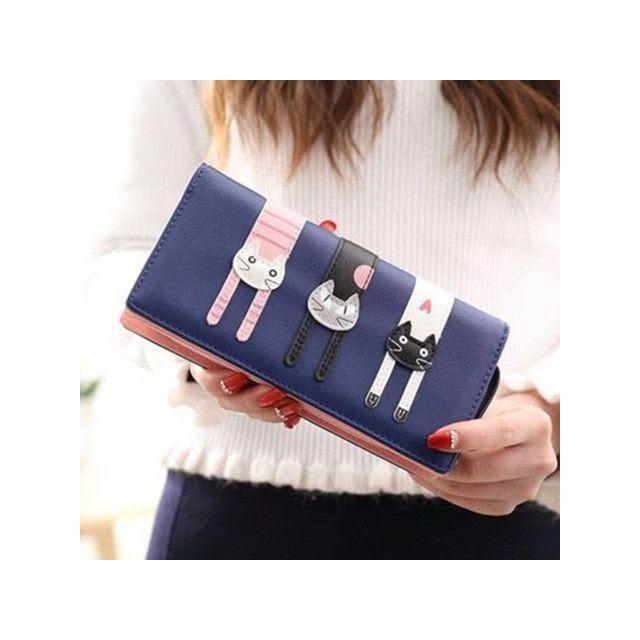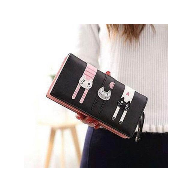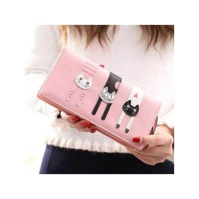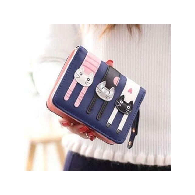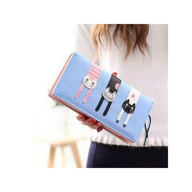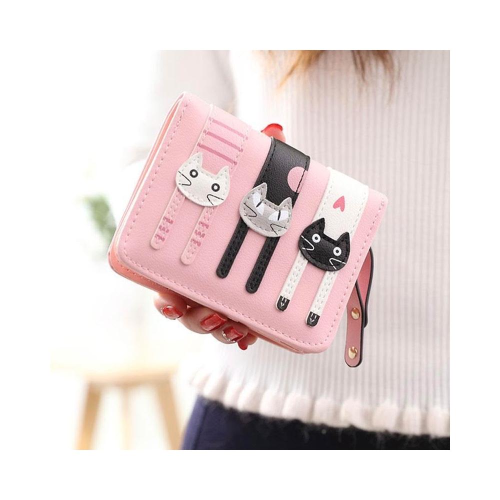防盜短款錢包女款摺疊錢包二合一卡通可愛三隻貓學生軟三折零錢包
