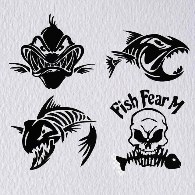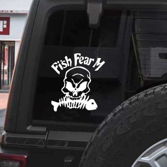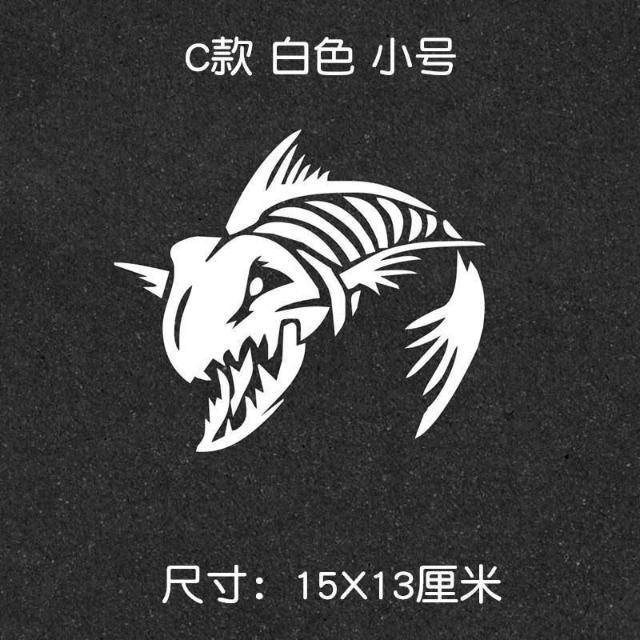 釣魚釣友魚箱貼 巨齒魚貼 汽車改裝飾反光防水貼花車貼紙魚骨骷髏