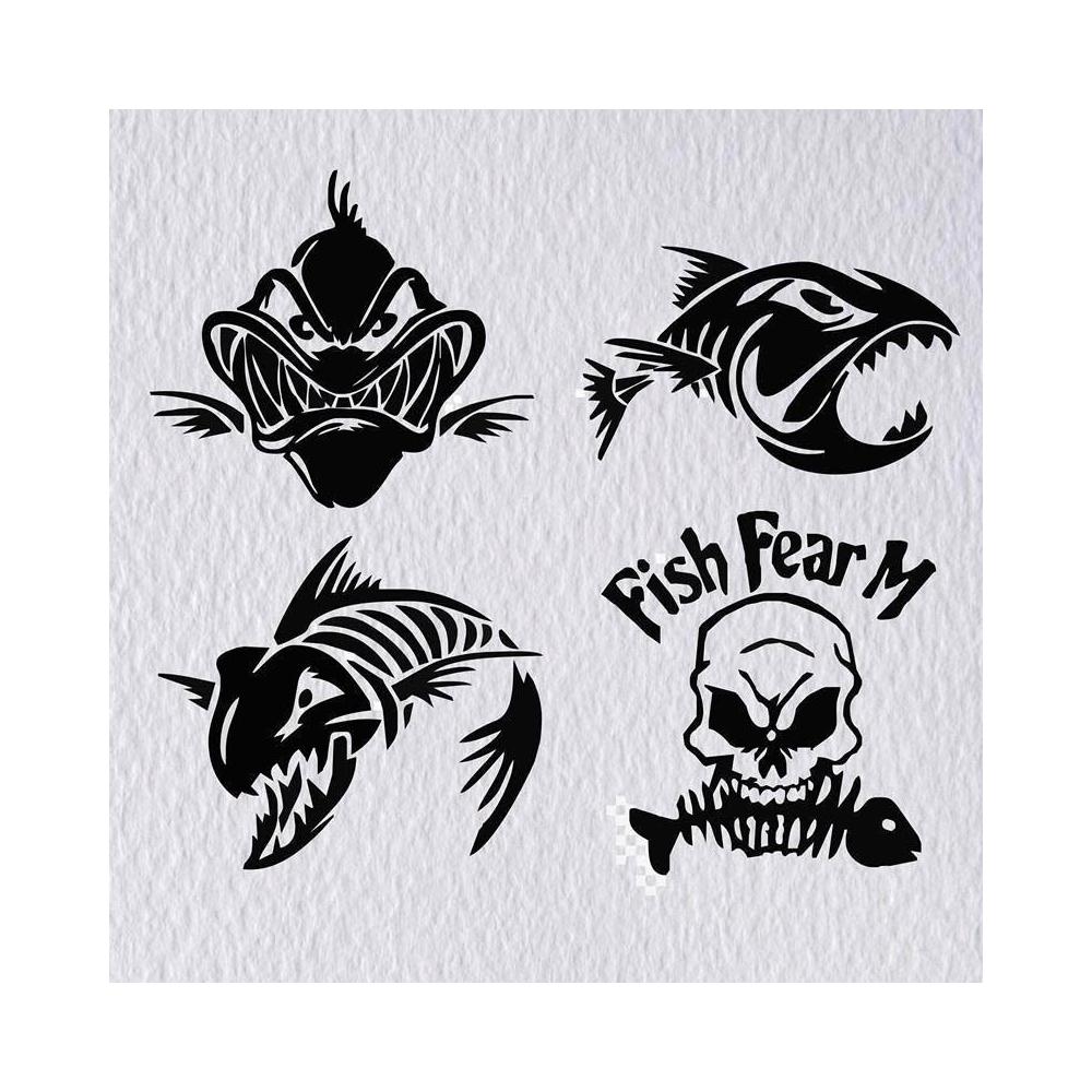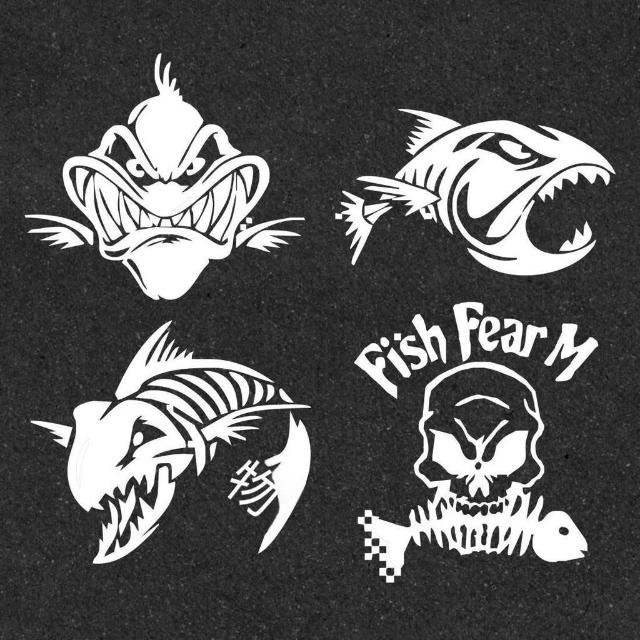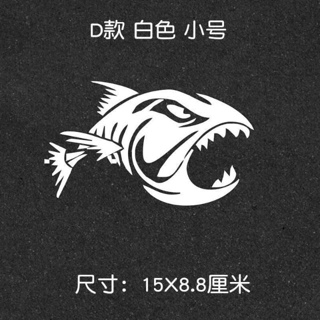 釣魚釣友魚箱貼 巨齒魚貼 汽車改裝飾反光防水貼花車貼紙魚骨骷髏