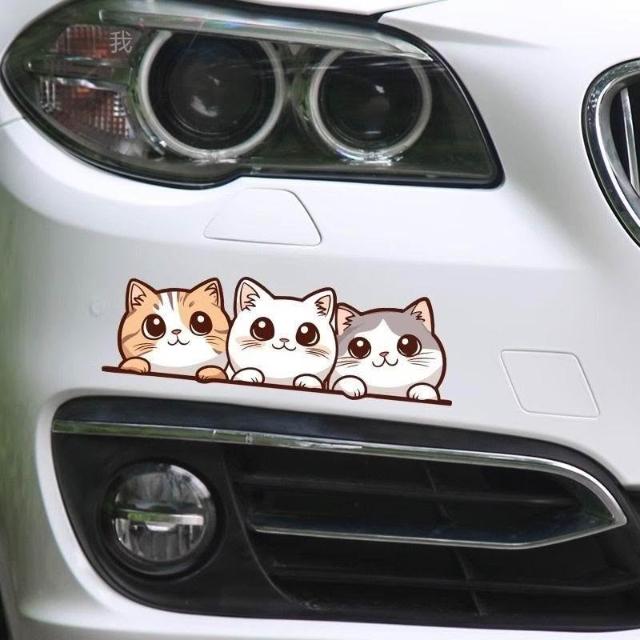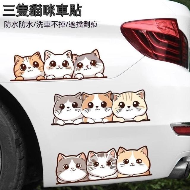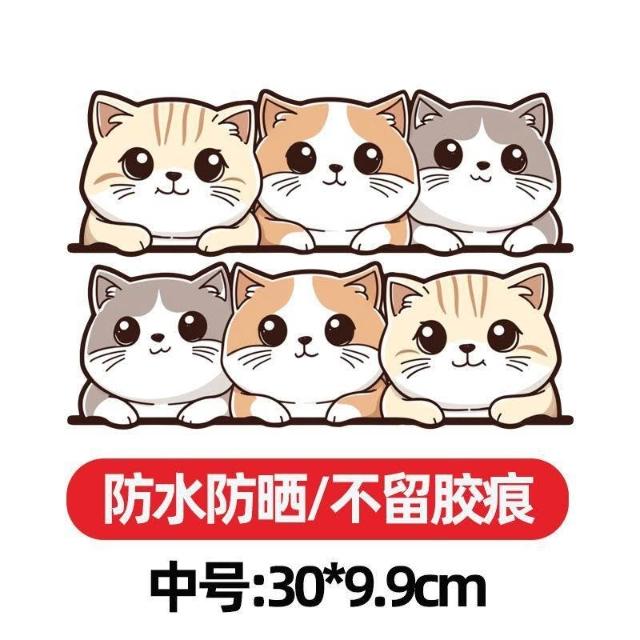 可愛貓咪卡通裝飾貼汽車貼紙創意電動摩托遮擋劃痕後窗保險槓遮蓋