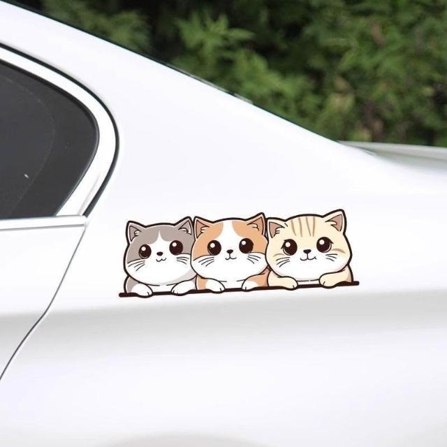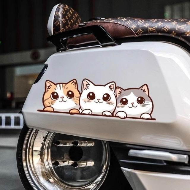 可愛貓咪卡通裝飾貼汽車貼紙創意電動摩托遮擋劃痕後窗保險槓遮蓋