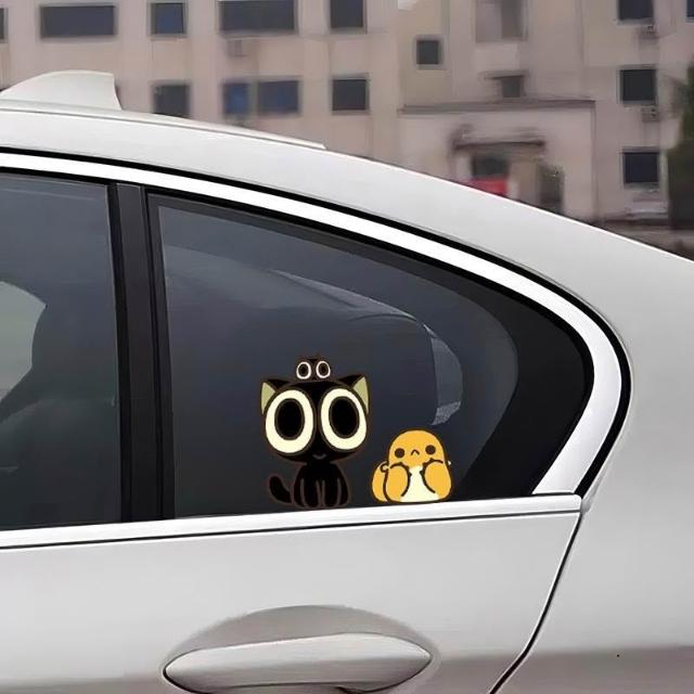 羅小黑戰記周邊動漫黑色貓咪貼紙汽車電動車行李箱劃痕遮擋車貼紙