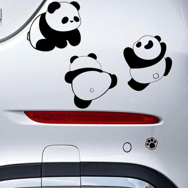 熊貓汽車貼紙劃痕遮擋遮蓋車頭車尾搞笑車身裝飾車門大面積車貼畫