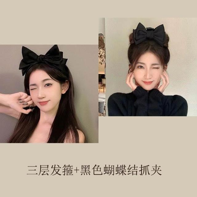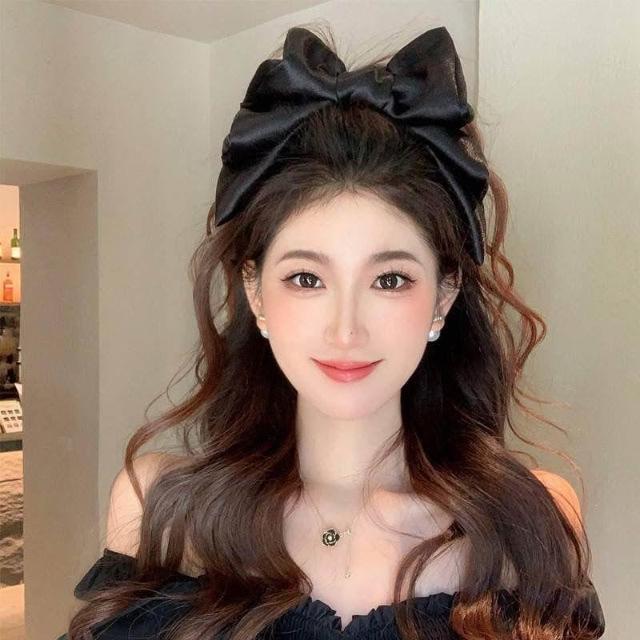 黑色網紗蝴蝶結頭箍高級感網紅洗臉頭箍髮飾女高顱頂在逃公主頭飾