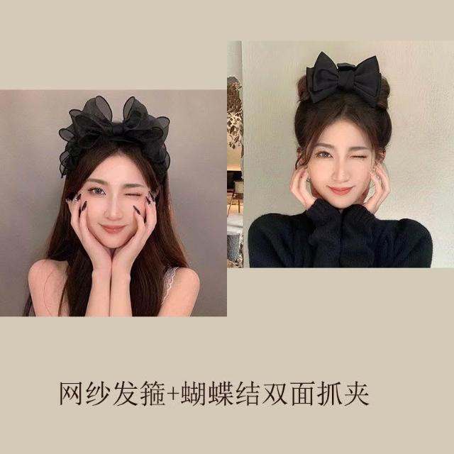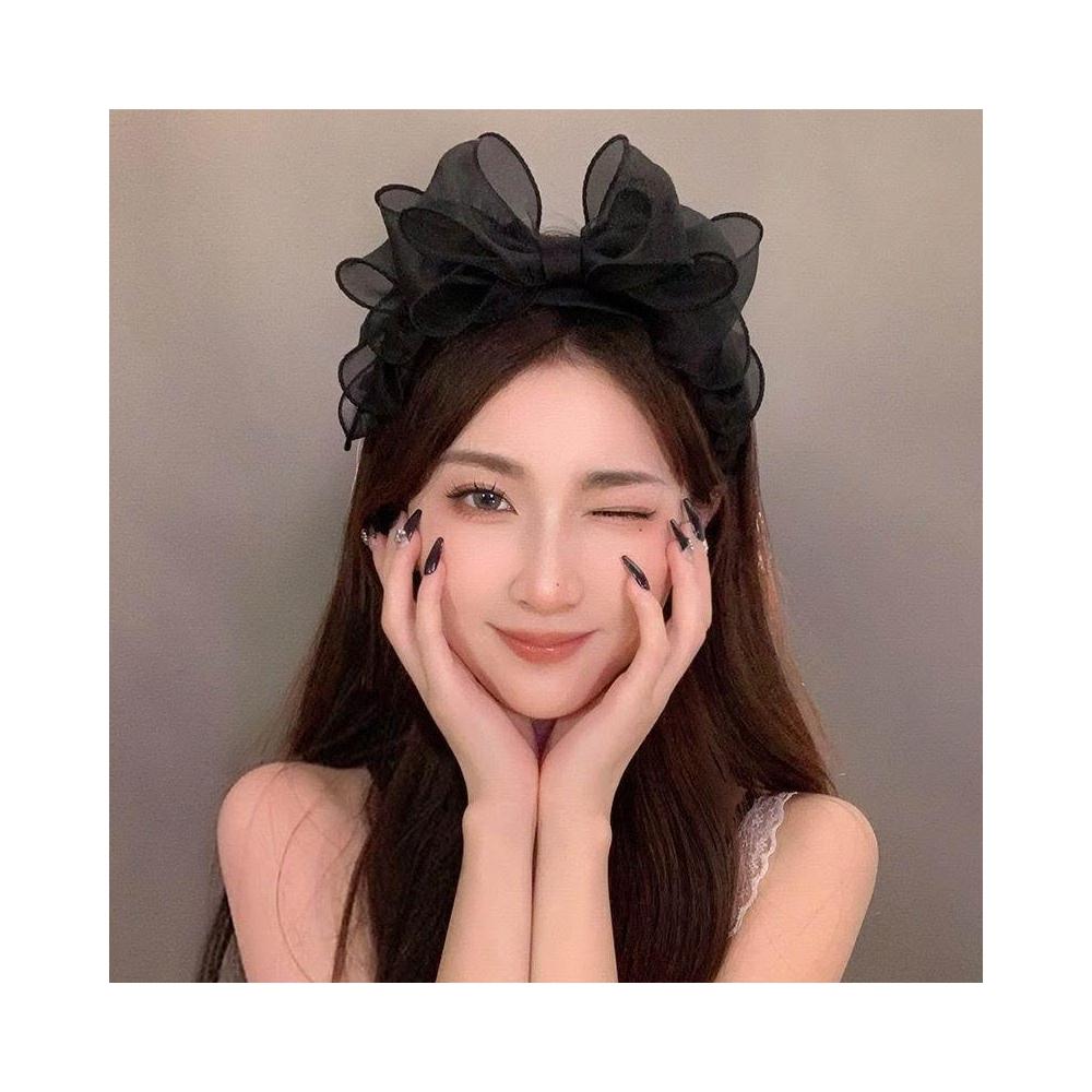 黑色網紗蝴蝶結頭箍高級感網紅洗臉頭箍髮飾女高顱頂在逃公主頭飾