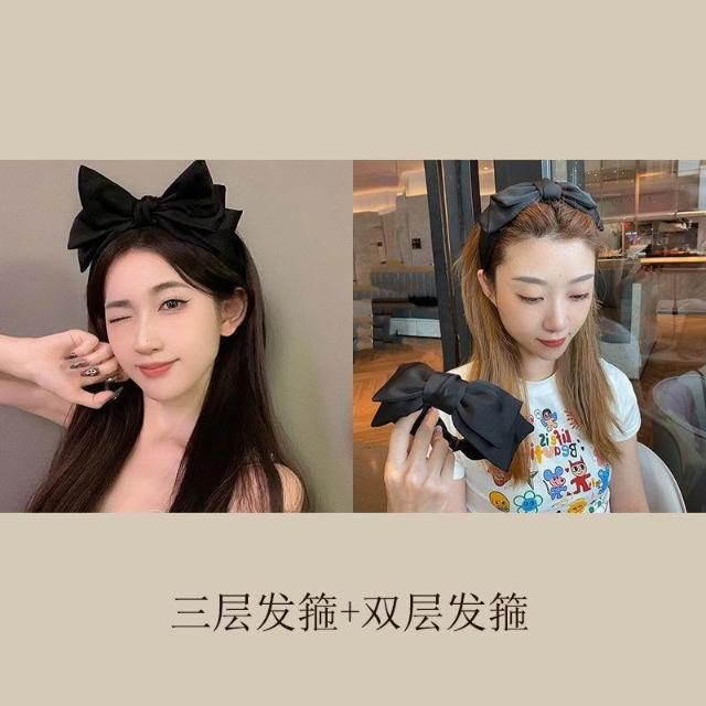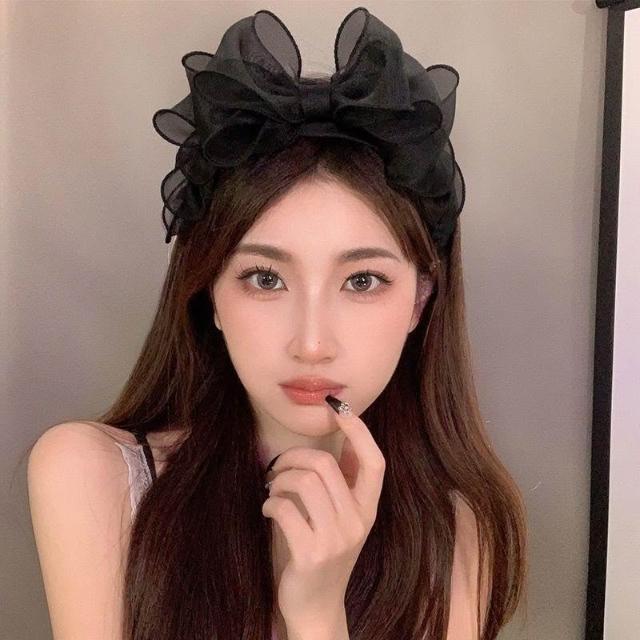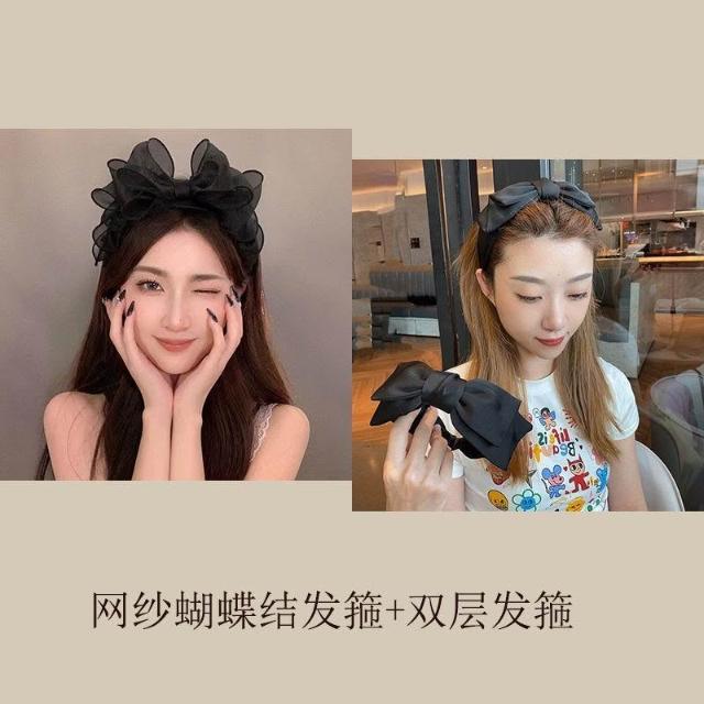 黑色網紗蝴蝶結頭箍高級感網紅洗臉頭箍髮飾女高顱頂在逃公主頭飾