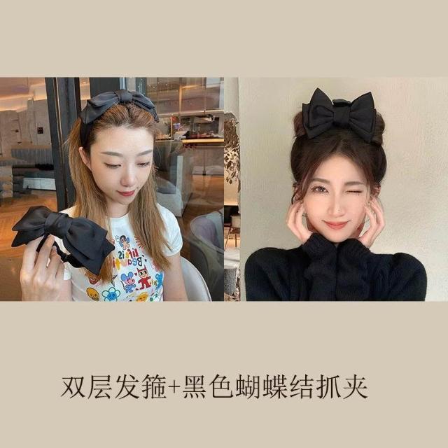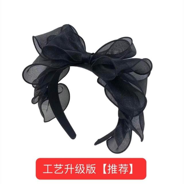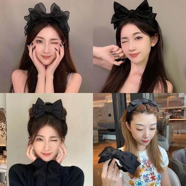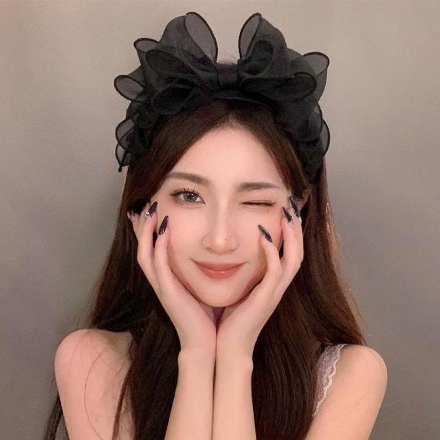 黑色網紗蝴蝶結頭箍高級感網紅洗臉頭箍髮飾女高顱頂在逃公主頭飾