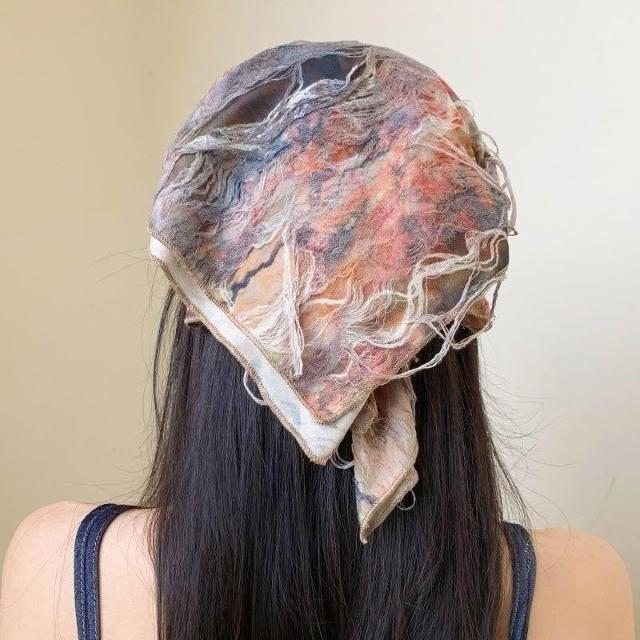復古扎染包頭三角頭巾女高級感辣妹風亞文化沙漠度假風拍照頭飾