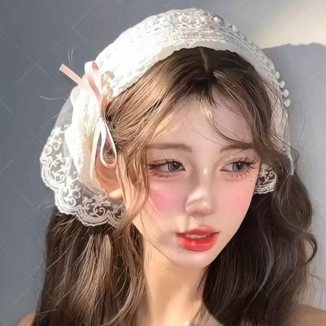 法式蕾絲頭巾女田園風2024新款包頭三角形頭巾海邊束髮帶夏季頭飾