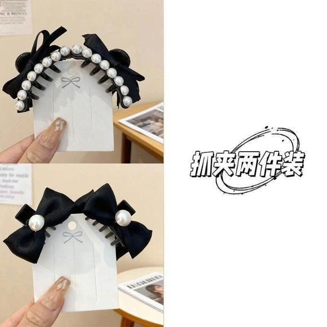 韓系珍珠蝴蝶結髮夾女復古前額公主頭小抓夾側邊劉海髮飾頭飾髮卡