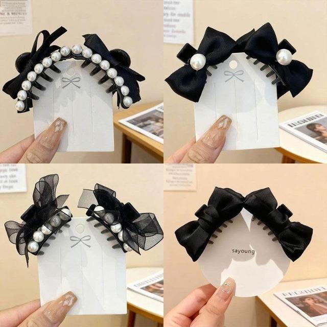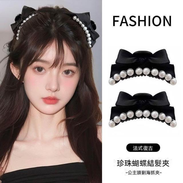韓系珍珠蝴蝶結髮夾女復古前額公主頭小抓夾側邊劉海髮飾頭飾髮卡