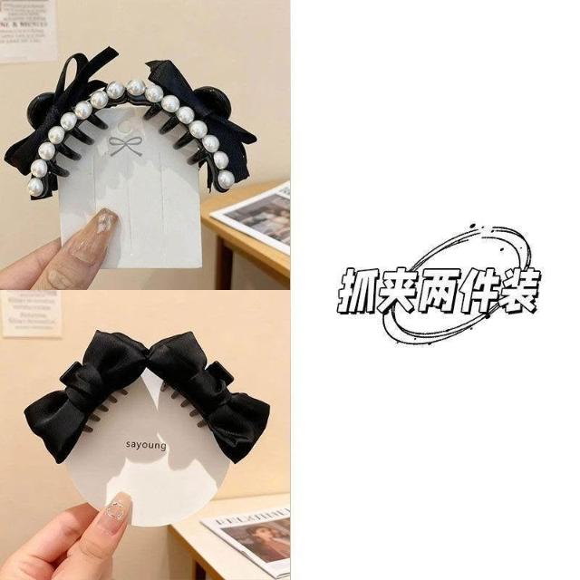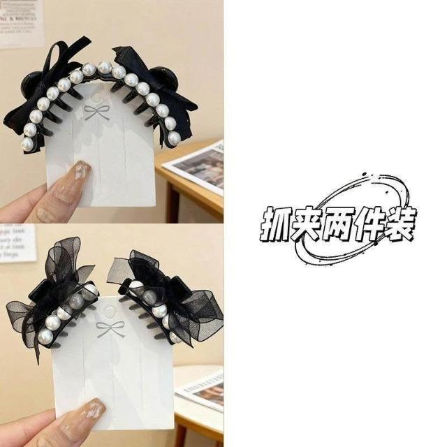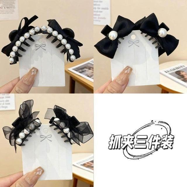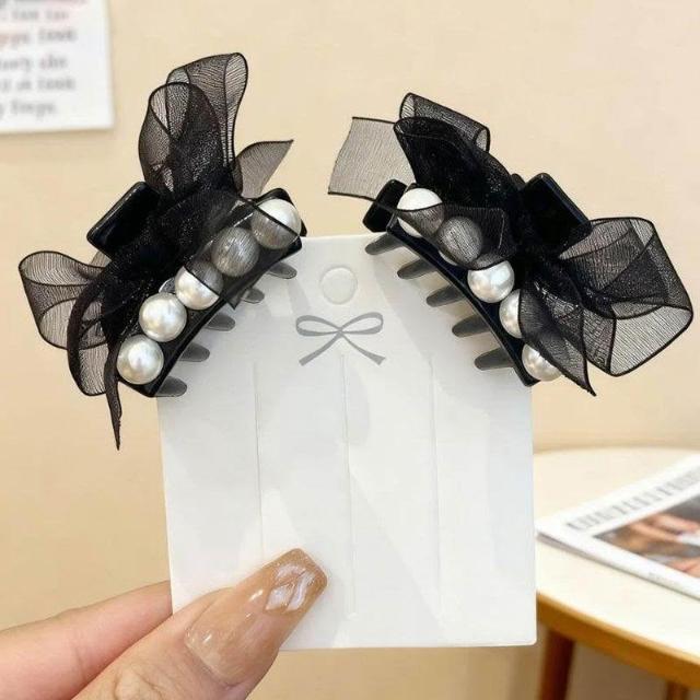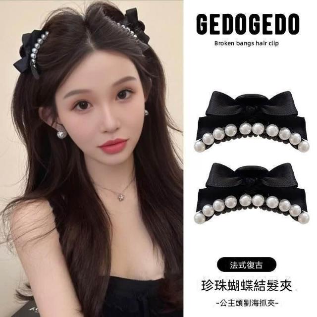 韓系珍珠蝴蝶結髮夾女復古前額公主頭小抓夾側邊劉海髮飾頭飾髮卡