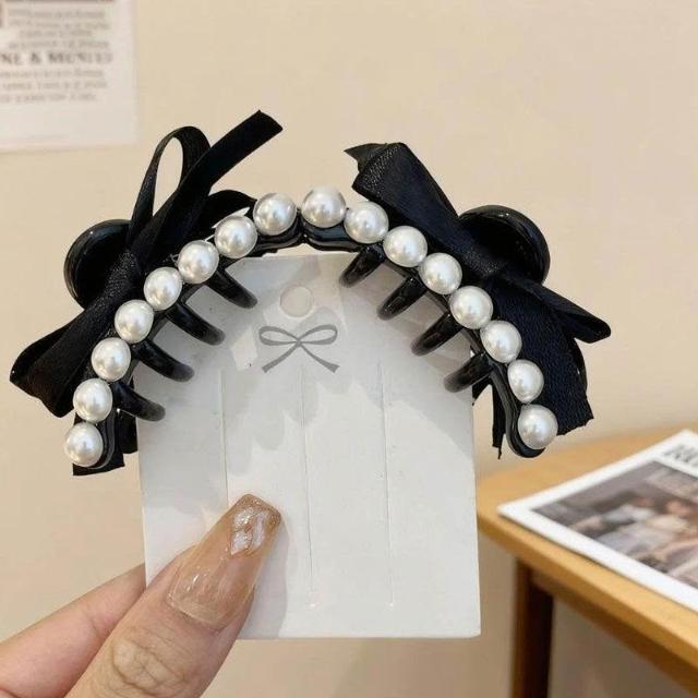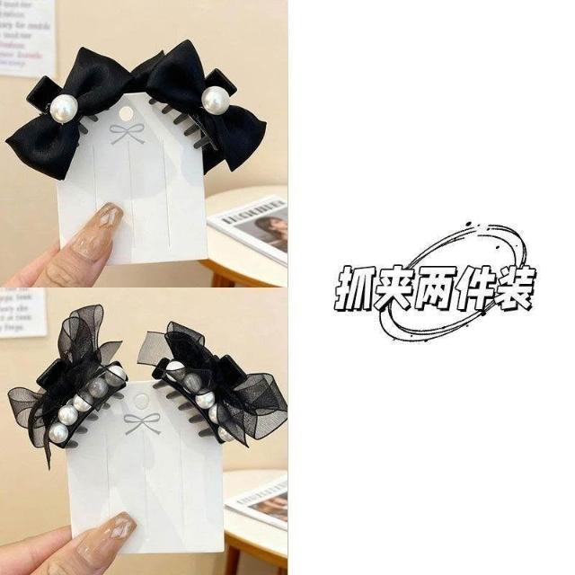 韓系珍珠蝴蝶結髮夾女復古前額公主頭小抓夾側邊劉海髮飾頭飾髮卡