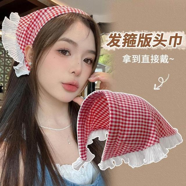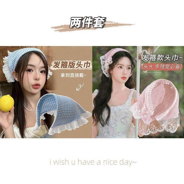 白色蕾絲髮箍頭巾一體法式三角巾包頭方巾帽田園風頭飾同款女百搭