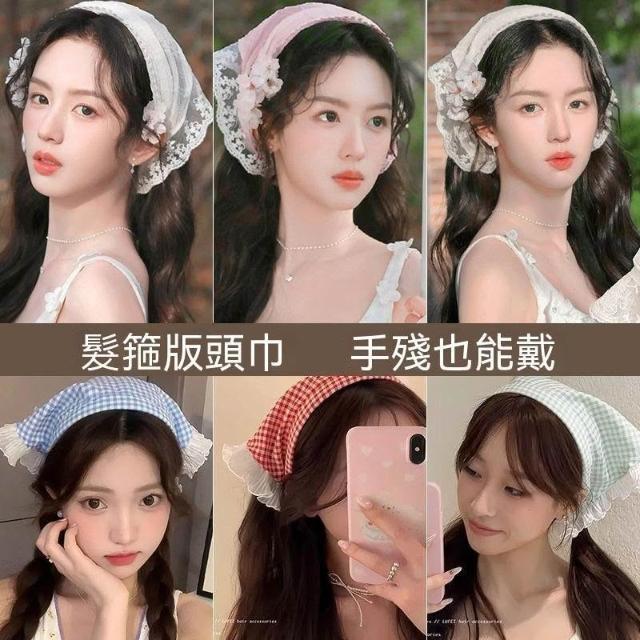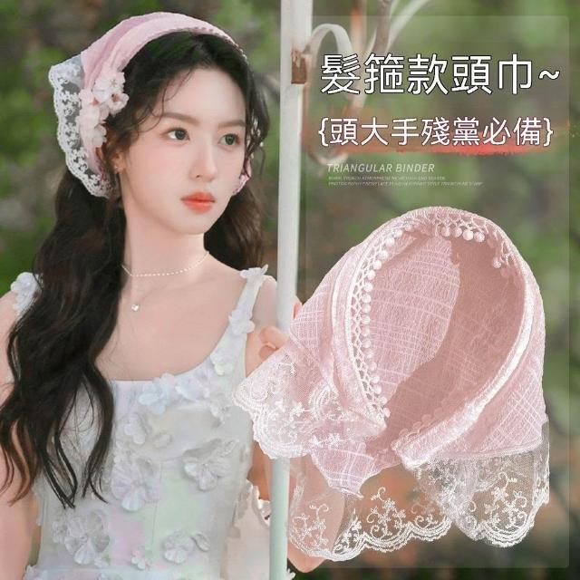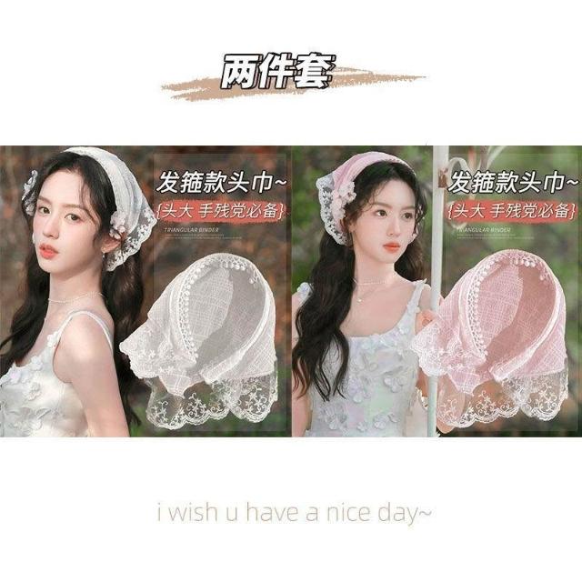 白色蕾絲髮箍頭巾一體法式三角巾包頭方巾帽田園風頭飾同款女百搭