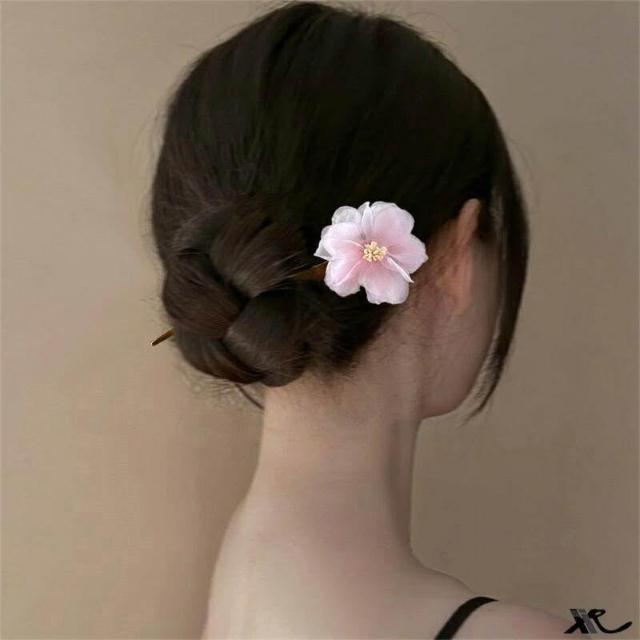 紫色玫瑰花木簪夏季髮簪網紗花朵髮釵古風簪花頭飾氣質髮飾配飾女
