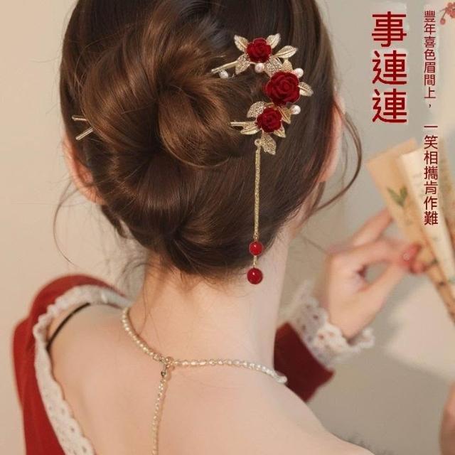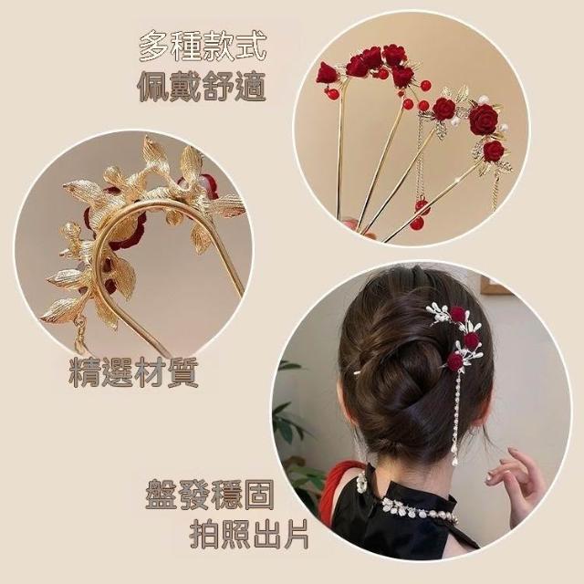 新年流蘇u型髮簪女款簪子新中式旗袍髮釵盤發神器敬酒服新娘頭飾