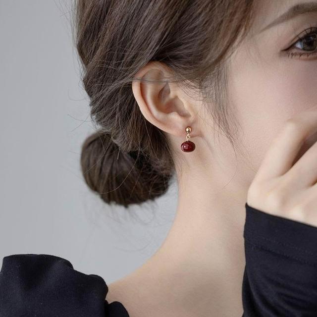 2024新款爆款高級感小衆設計氣質安哥拉紅耳墜耳飾顯瘦秋冬耳環女