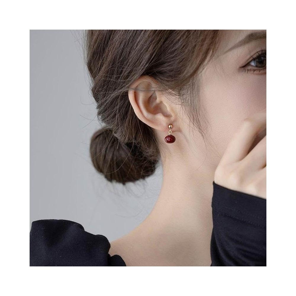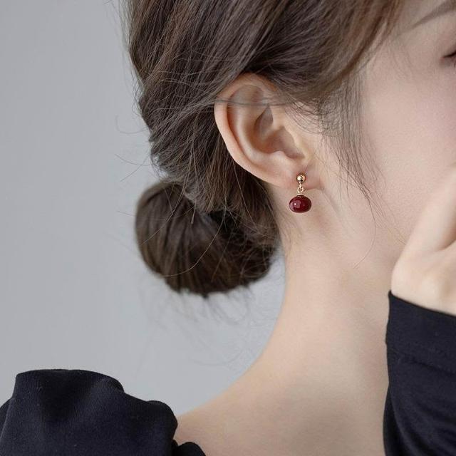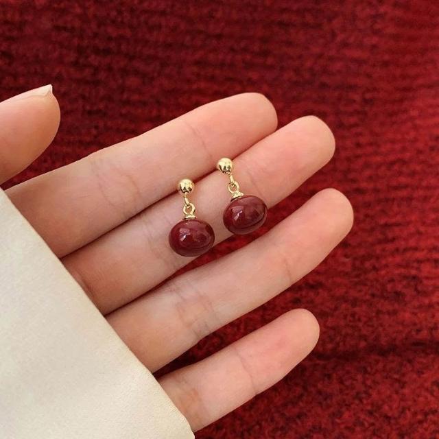 2024新款爆款高級感小衆設計氣質安哥拉紅耳墜耳飾顯瘦秋冬耳環女