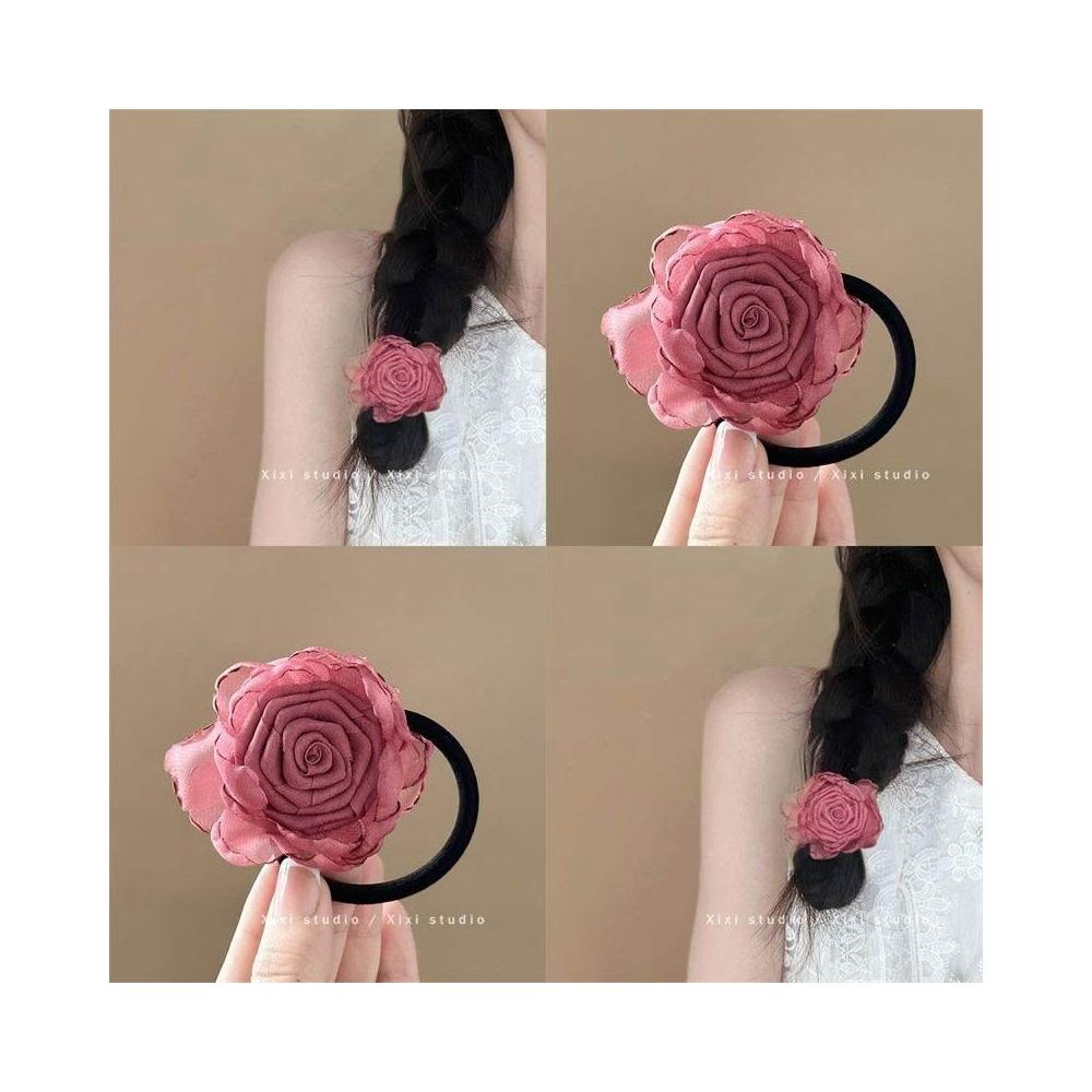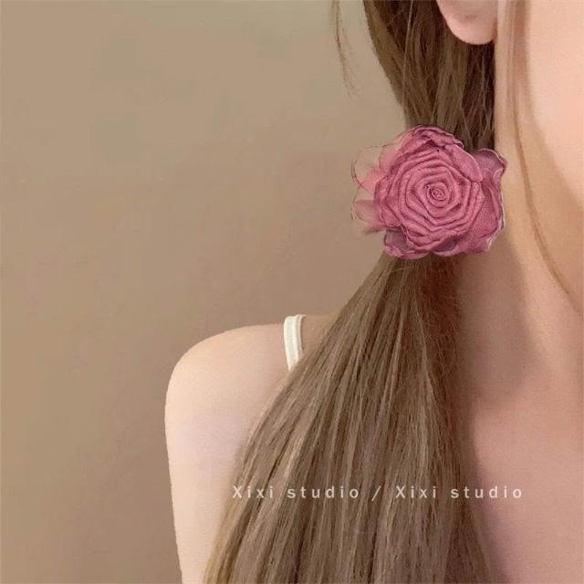玫瑰花髮圈花朵發繩法式復古頭繩女扎頭髮頭飾2024新款高顏值頭花