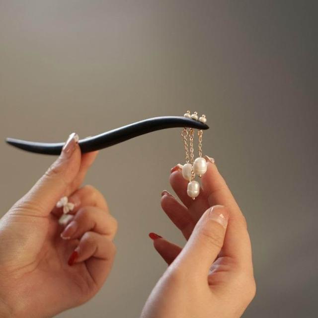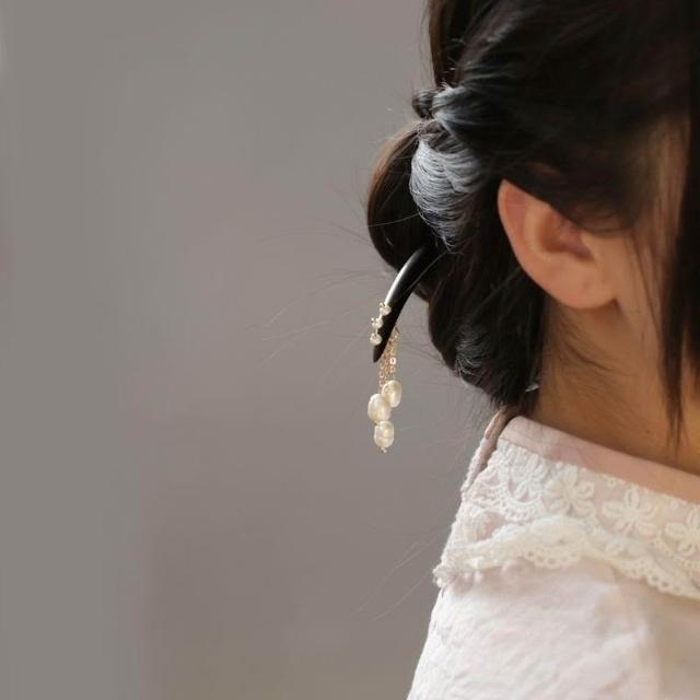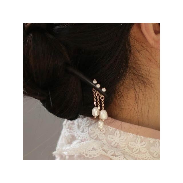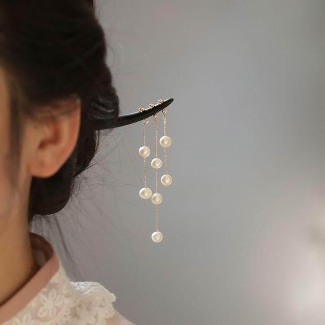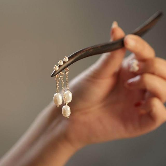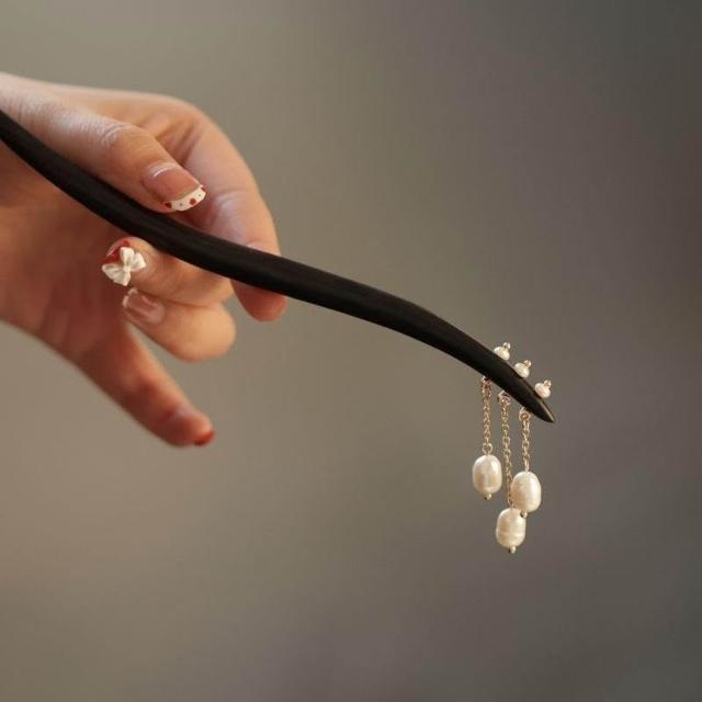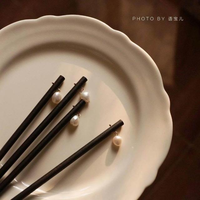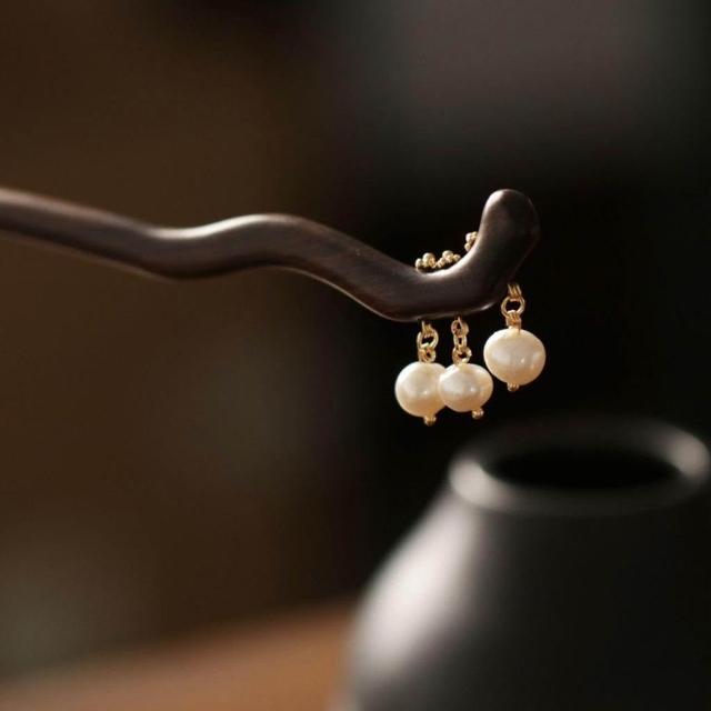 山夕木簪盤髮簪高級感丸子頭飾珍珠髮飾國風旗袍日常茶服簪子
