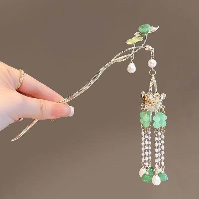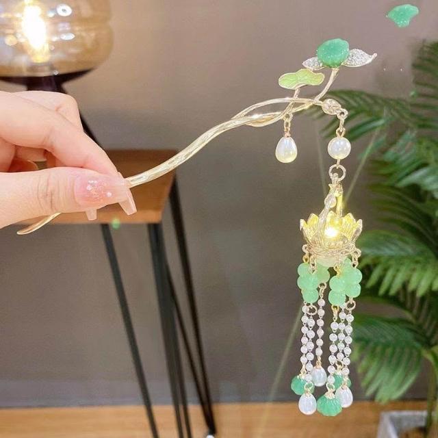 發光荷花蓮蓬宮燈燈籠流蘇髮簪古風盤髮簪子漢服旗袍髮釵國風發飾