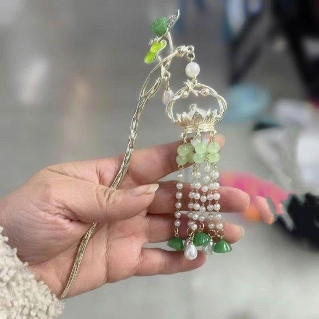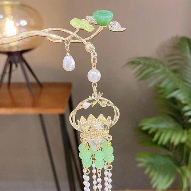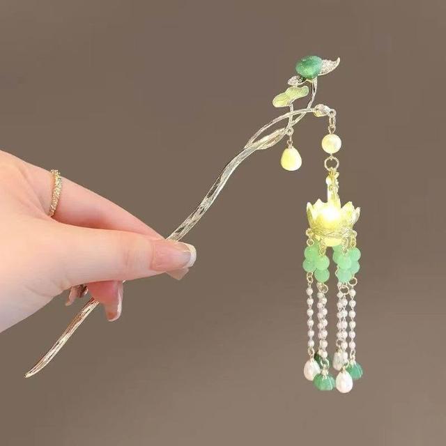 發光荷花蓮蓬宮燈燈籠流蘇髮簪古風盤髮簪子漢服旗袍髮釵國風發飾