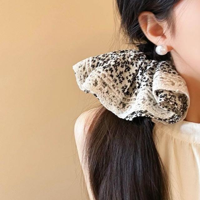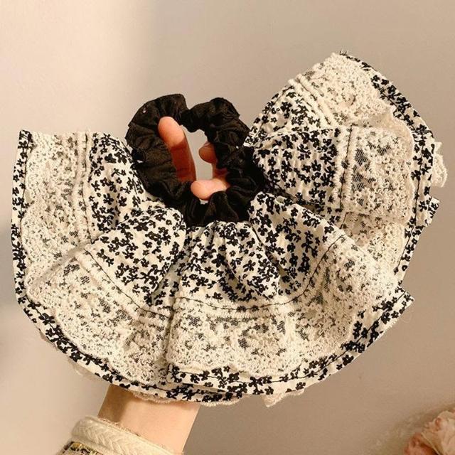 碎花裙襬~法式復古蕾絲黑色大腸髮圈女高級感發飾大號發繩新款春