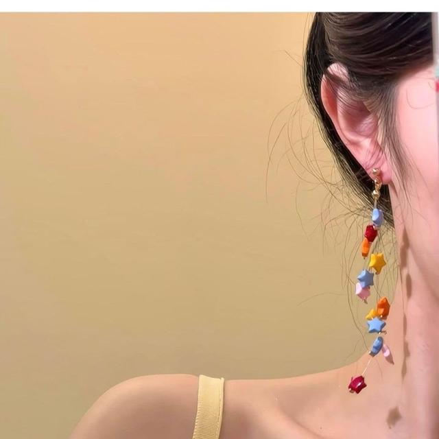 多彩繆斯~夏天彩色多巴胺星星流蘇耳環女小衆設計感甜美耳飾耳夾