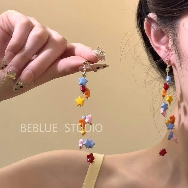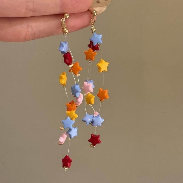 多彩繆斯~夏天彩色多巴胺星星流蘇耳環女小衆設計感甜美耳飾耳夾