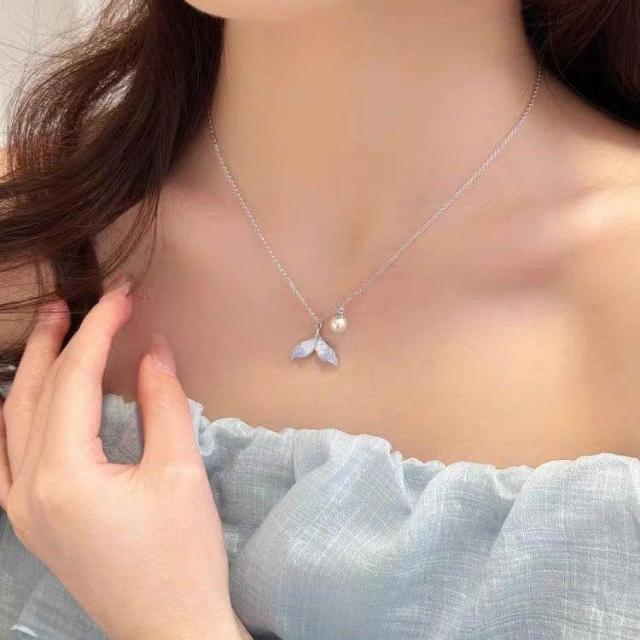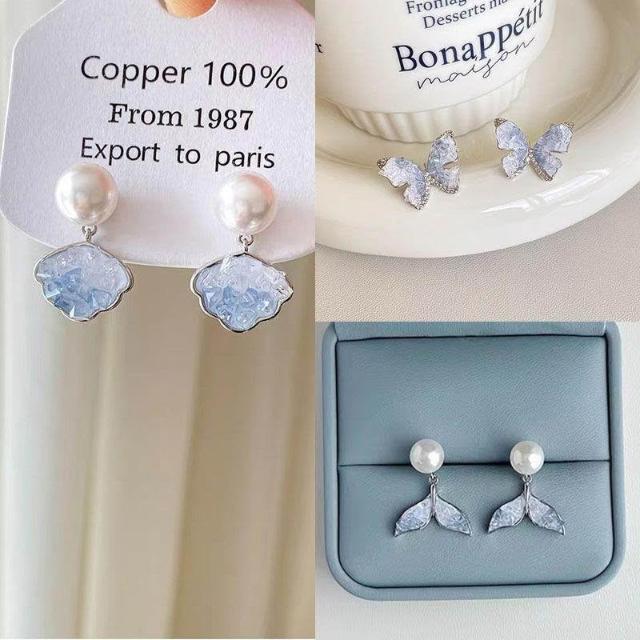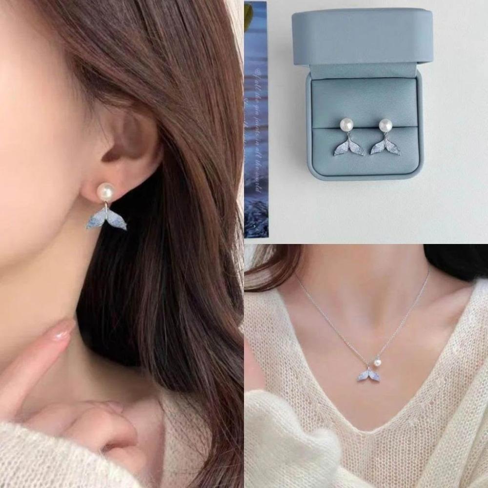 獨特小衆設計感藍晶石魚尾耳環吊墜女防過敏夏天2024新款爆款耳飾