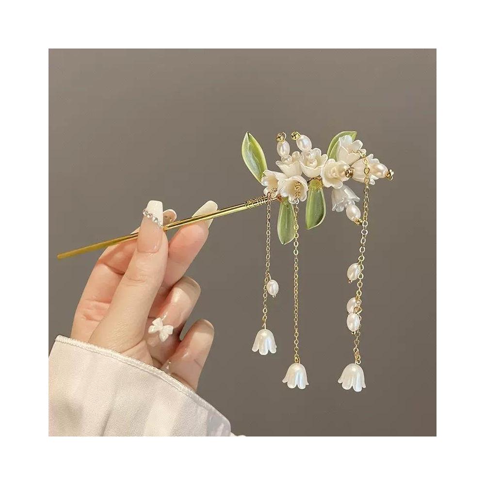 玉蘭花髮簪古風簪子漢服頭飾女旗袍髮飾流蘇珍珠金屬髮釵步搖1#