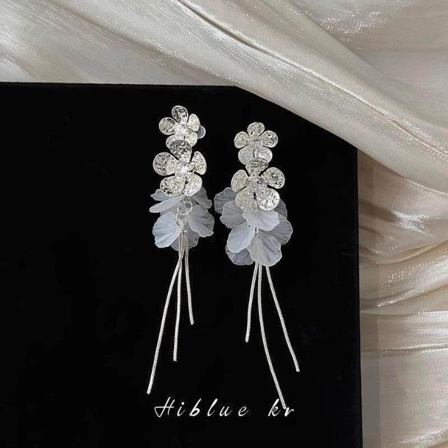 鋯石花朵貝殼海邊度假風流蘇長款耳環女方圓臉耳飾2025新款高級感