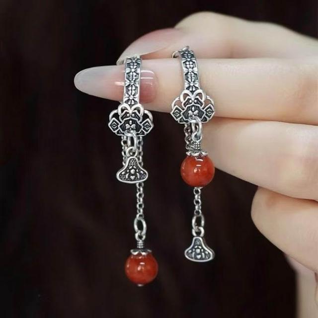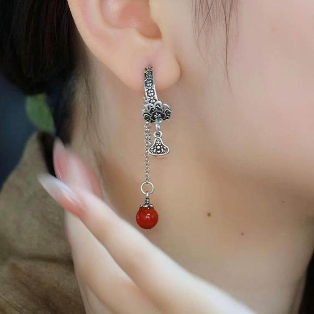 銀針新中式長款流蘇不對稱耳墜耳環女復古防過敏不掉色設計感