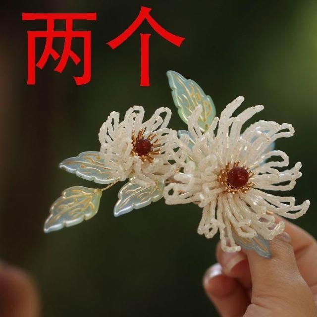 漢服原創輯珠頭飾簪花古風發夾女國風森系菊花邊夾唐風手工高級感