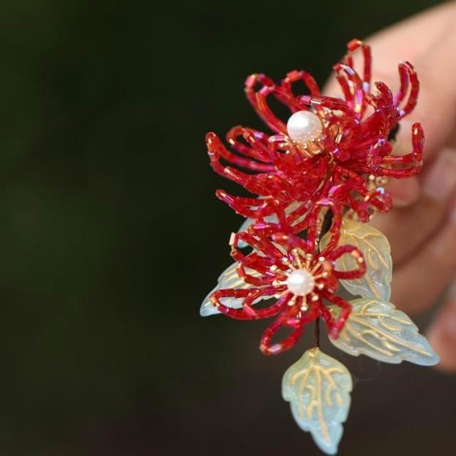 漢服原創輯珠頭飾簪花古風發夾女國風森系菊花邊夾唐風手工高級感