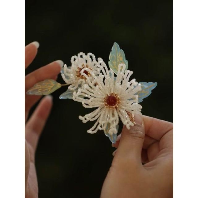 漢服原創輯珠頭飾簪花古風發夾女國風森系菊花邊夾唐風手工高級感