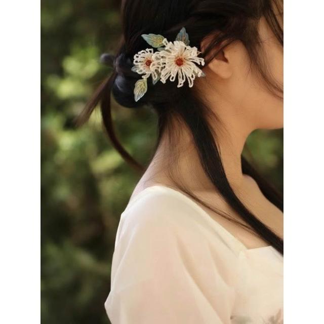 漢服原創輯珠頭飾簪花古風發夾女國風森系菊花邊夾唐風手工高級感