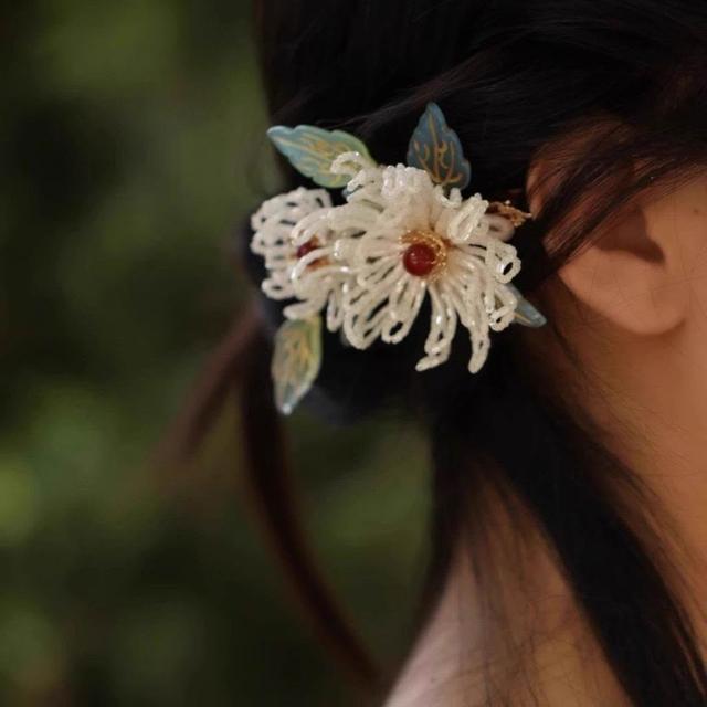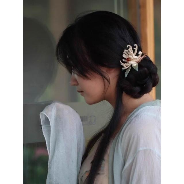 漢服原創輯珠頭飾簪花古風發夾女國風森系菊花邊夾唐風手工高級感
