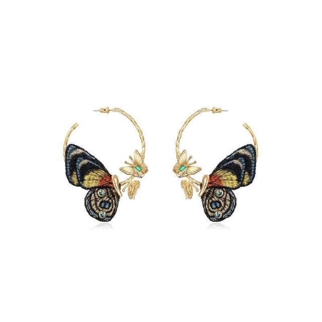 刺繡蝴蝶氣質環形耳環針耳釘女夏季小衆設計感耳飾品耳墜
